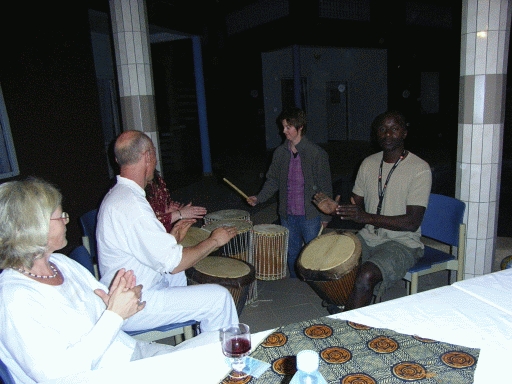 Alle sind dabei, um am Abend in einer gemütlichen Runde auf afrikanischen Instrumenten zu spielen...es hält keinen auf seinem Zimmer!